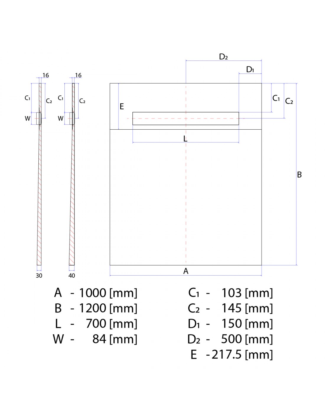 - Eine Plattenstärke von 40 mm ist die dickste verfügbare Stärke für dieses Modell und bietet eine höhere Schalldämmung, steileres Gefälle und eine robustere Oberfläche. Es eignet sich für größere Duschbereiche mit einer Längenseite ≥ 120 cm.