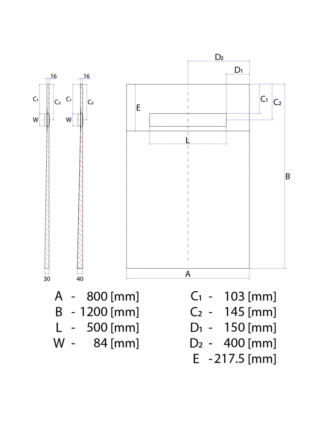 - Eine Plattenstärke von 40 mm ist die dickste verfügbare Stärke für dieses Modell und bietet eine höhere Schalldämmung, steileres Gefälle und eine robustere Oberfläche. Es eignet sich für größere Duschbereiche mit einer Längenseite ≥ 120 cm.