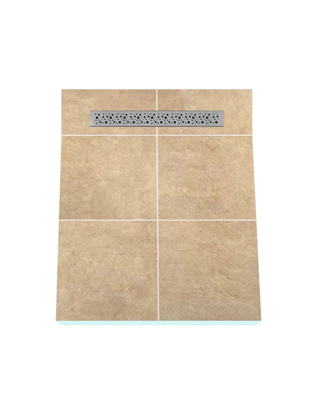 Befliesbares Duschelement 80 x 120 cm mit einseitigem Gefälle für Fliesenboden mit integrierter Edelstahl-Duschrinne, Siphon und Designrost Mistral (Tropfen)