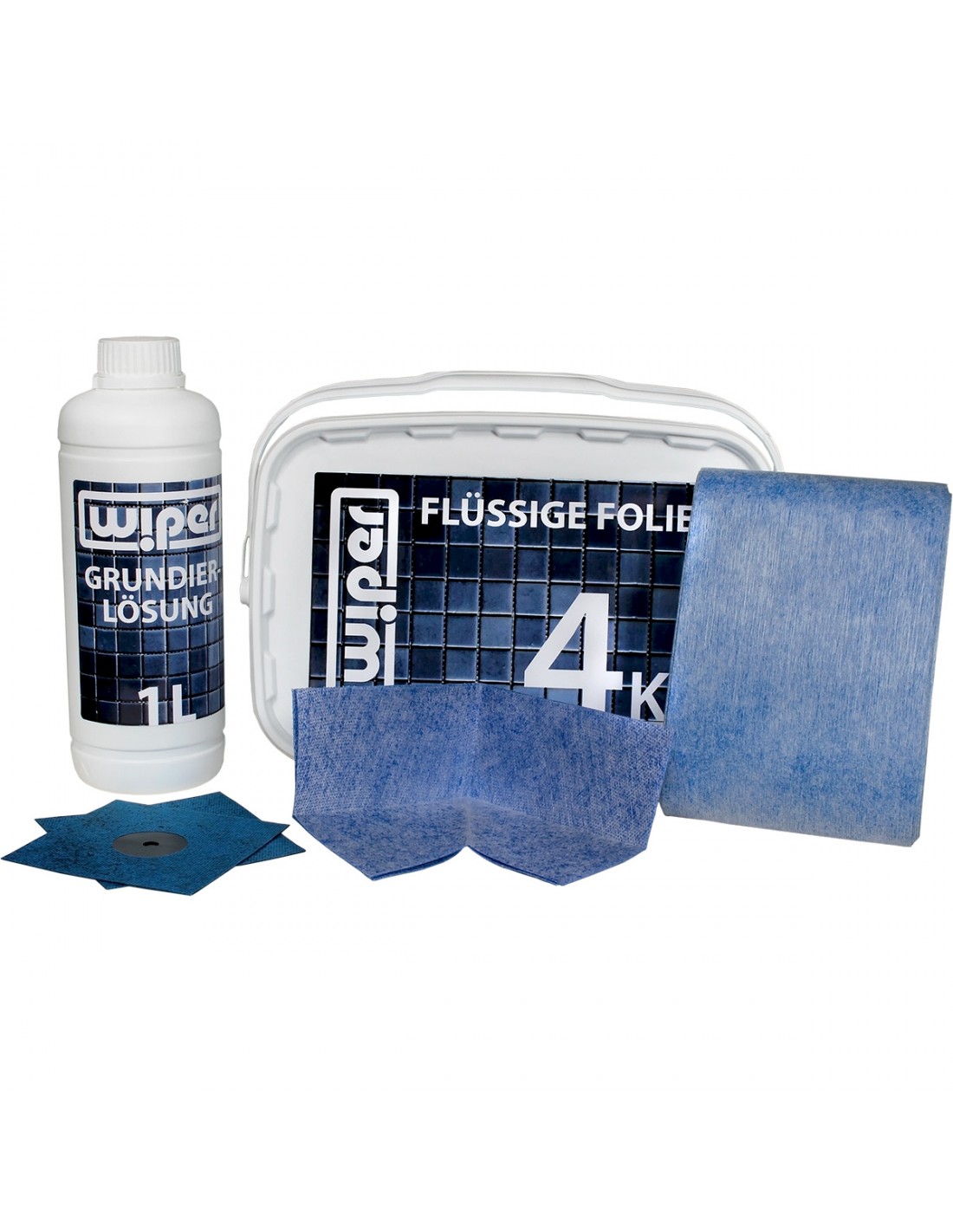 Ein Praktisches Abdichtset für Ihre Dusche; beinhaltet alle benötigten Komponenten: 4kg flüssige Dichtfolie, 1L Grundierlösung, 10m elastisches Dichtband, 2x Dichtecken und 2x Runddichtungen. Eine ideale Lösung, um den Ablauf samt Rohranschlüsse wasserfest abzudichten. Ein Set ist ausreichend für eine Fläche von 3,5 m² - auch anwendbar auf den gesamten Nassraum inkl. der Wände. Jede Komponente des Kits ist gebrauchsfertig und sehr einfach zu handhaben - Es erfordert keine speziellen Werkzeuge. Das Dichtset kommt in einem praktischen Kunststoffbehälter mit Tragegriff.