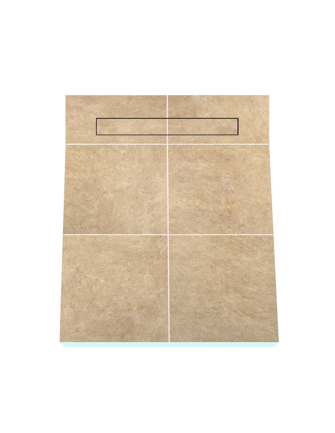 - Vorgefertigtes Gefälle: Jedes Duschelement beinhaltet ein per CNC-Technik eingefrästes 1-seitiges Gefälle, welches je nach Plattenstärke und -größe in der Neigung variiert. Das vorgeformte Gefälle erleichtert die Fliesenverlegung und sorgt für einen optimalen Wasserablauf in eine Richtung.