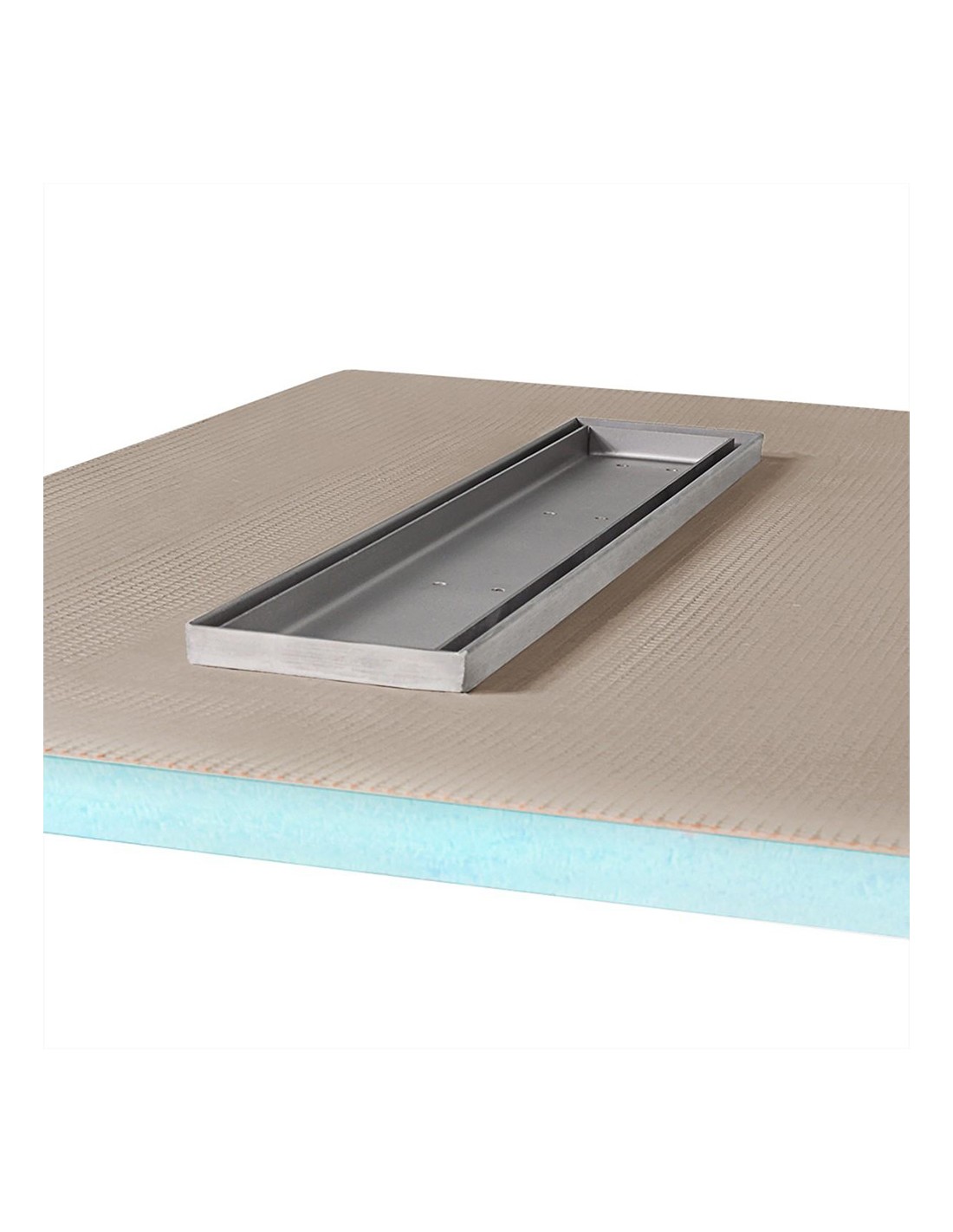 - Integrierter Ablauf: Ab Werk ist eine [drain_length] cm lange Duschrinne aus der Serie "Premium" mitsamt Isolierflansch sauber in die Platte integriert.