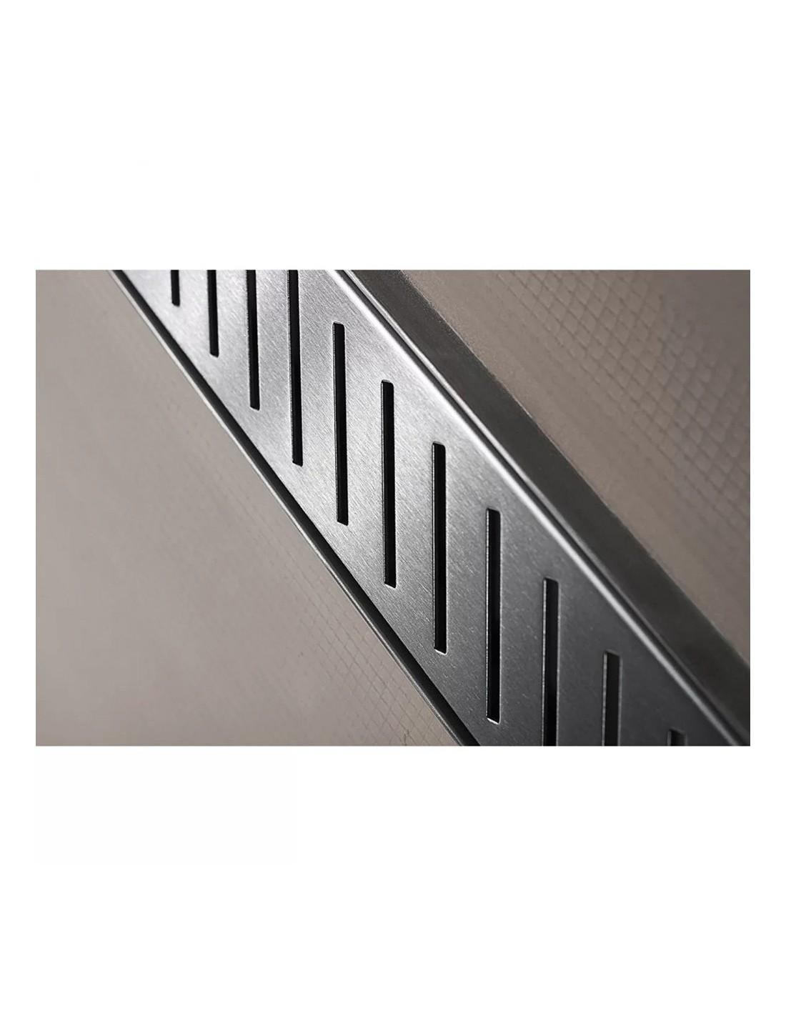 Befliesbares Duschelement 90 x 120 cm mit einseitigem Gefälle für Fliesenboden mit integrierter Edelstahl-Duschrinne, Siphon und Designrost Zonda (Streifen)