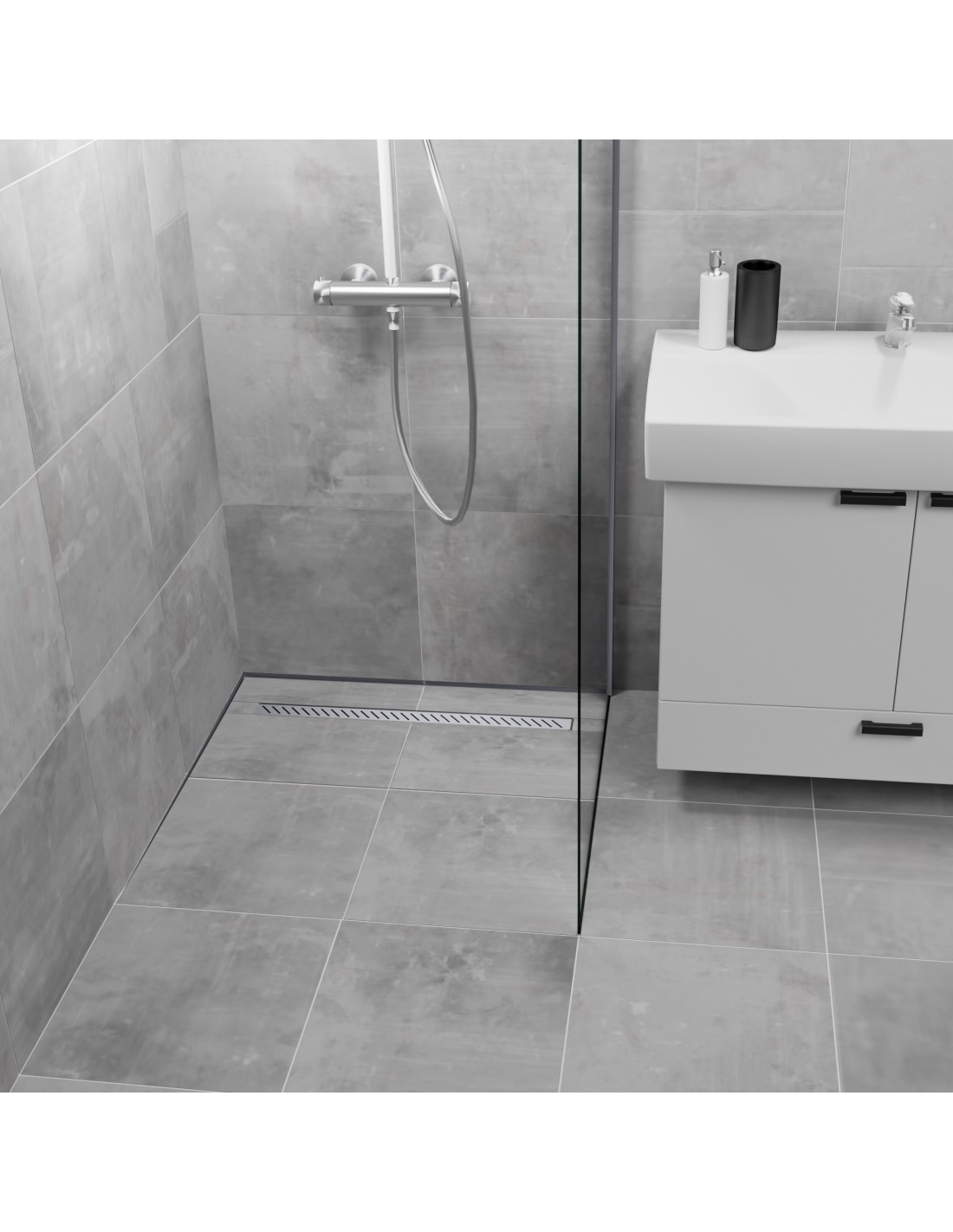 - Duschelement mit integrierter Duschrinne · Designrost · PP-Siphon