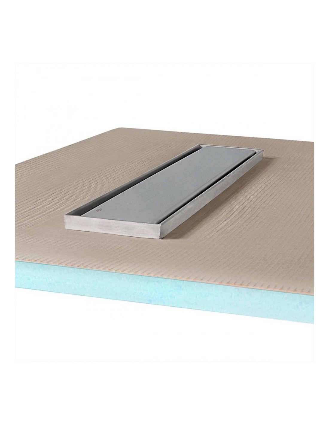 Befliesbares Duschelement 90 x 170 cm mit einseitigem Gefälle für Fliesenboden mit integrierter Edelstahl-Duschrinne, Siphon und Designrost Ponente (geschlossen)