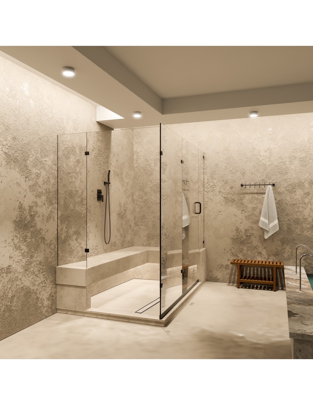 Das quadratische Maß 80 x 80 cm ist die perfekte Lösung für einen kompakten Duschbereich.Das Designrost "Pure" kann wie der umliegende Boden ebenfalls mit dem gleichen Material beschichtet werden – dadurch verschwindet die Rinne nahezu vollständig und verleiht Ihrem Bad einen minimalistischen Gesamtlook. Schwarz ist eine hervorragende Kontrastfarbe für helle Bäder, welche optimal mit rustikalen Holzelementen und zeitlosen Materialien wie Mikrozement oder Marmor harmoniert. Die Trendfarbe wird gerne mit einer matten Oberfläche kombiniert, welche sich ideal in industrielle Baddesigns einfügt. Alternativ ist eine gebürstete oder polierte Ausführung möglich.