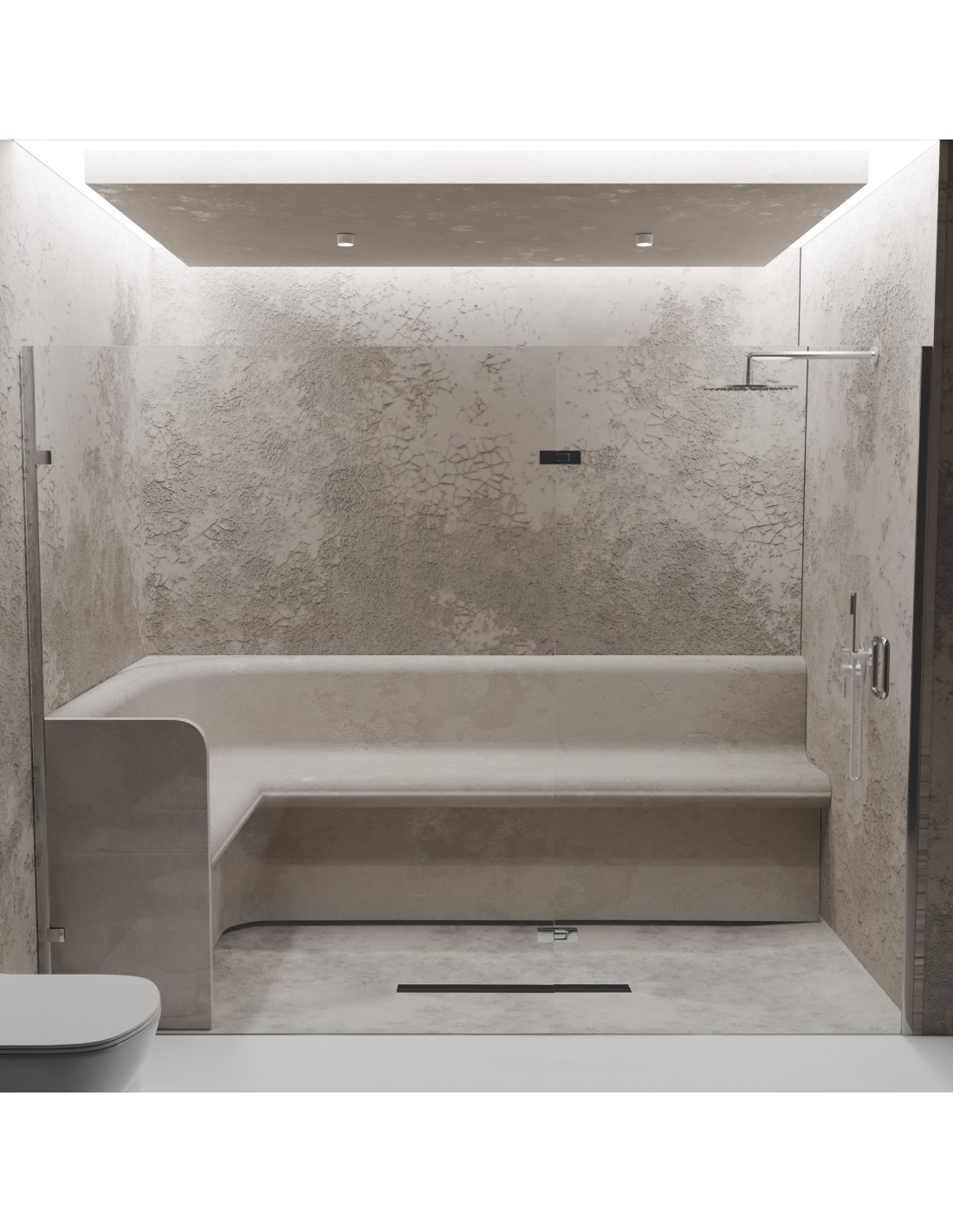- Integrierter Ablauf: Werkseitig wird eine [drain_length] cm lange Duschrinne speziell für Mikrozement aus der Serie "MCR PVD" mit Isolierflansch sauber in die Platte eingearbeitet.