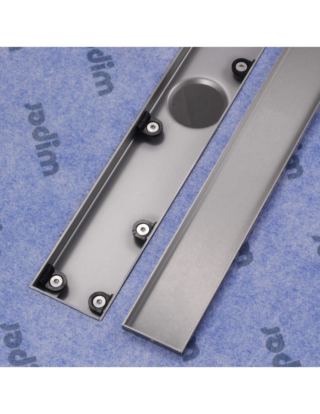 Duschrinnen aus der Produktserie "Wiper MCR PVD" verfügen über eine effiziente Sekundärentwässerung = eine versteckte, doppelte Ablaufebene unter dem Bodenbelag. Diese stellt neben der primären Entwässerung eine wichtige Funktion im Falle von Undichtigkeiten dar: falls Sickerwasser, z.B. durch Rissbildungen im Untergrund, in tiefere Bauschichten gelangt, verhindert die Sekundärentwässerung ein Anstauen des Wassers und eine daraus resultierende Schimmelbildung. Stattdessen sorgt sie dafür, dass die Feuchtigkeit dennoch problemlos entweichen kann. Das sekundäre System schützt somit langfristig vor Feuchtigkeitsschäden, die oftmals jahrelang unbemerkt bleiben.
