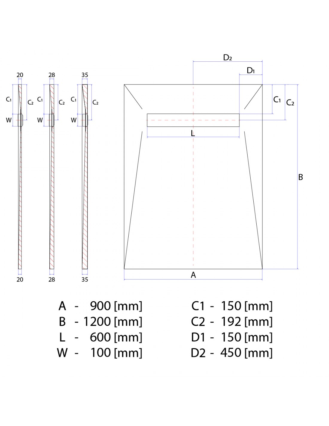 - Eine Plattenstärke von 35 mm ist die dickste verfügbare Stärke mit einem steileren Gefälle, höherer Schalldämmung und robusteren Oberfläche. Es eignet sich für größere Duschbereiche mit einer Längenseite ≥ 120 cm.