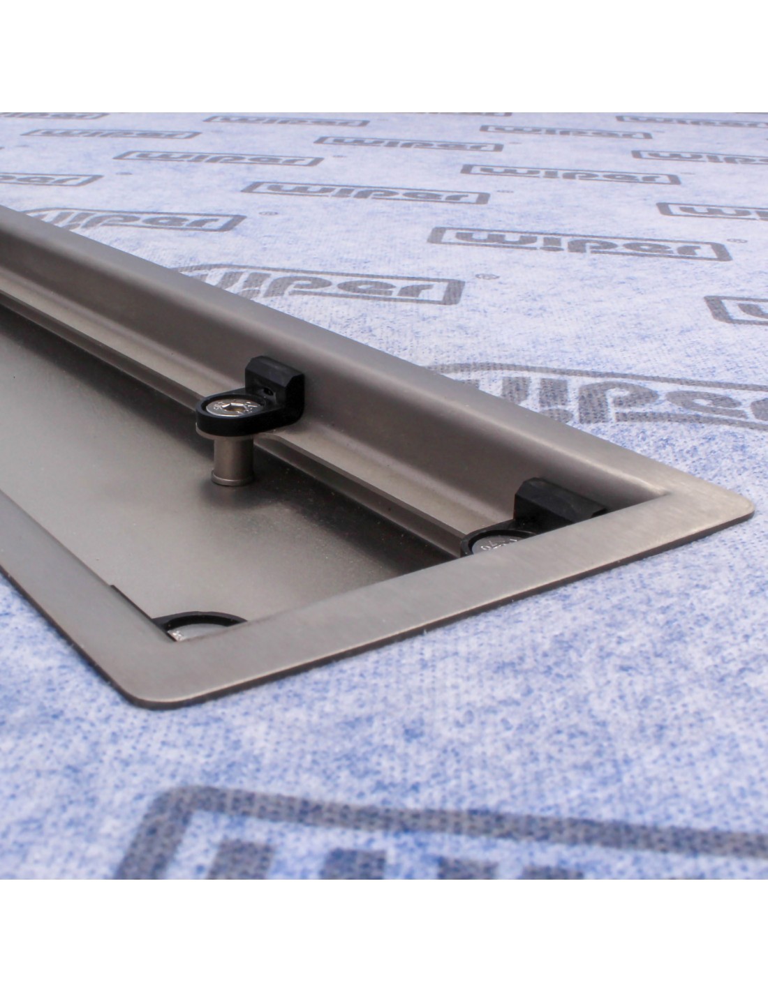Das Wiper Showerlay 90 x 120 cm Line VF Ponente ist ein einbaufertiges Duschelement mit Rinne und 4-seitigem Gefälle speziell für Vinylboden. Es ist die ideale Lösung für die Errichtung einer barrierefreien Dusche, welche moderne Optik mit langlebiger Funktionalität vereint. Durch den ebenerdigen Einbau entsteht ein nahtloser Übergang zum restlichen Badezimmerboden – Dieses stufenlose Konzept vergrößert den Raum optisch und ist vor allem für ältere Personen oder Menschen mit eingeschränkter Mobilität von Vorteil. Das Duschboard wird werksseitig mit der Edelstahl-Duschrinne "Wiper VF" ausgestattet und mitsamt Isolierflansch fest in der Bodenplatte verbaut. Diese ist standardmäßig 30 cm kürzer als Breite A der Duschplatte (z.B. L = 50 cm bei der Größe 80 x 120 cm). Verschiedene Designs sorgen für zusätzliche Flexibilität und können auf Anfrage auch einzeln erworben werden.