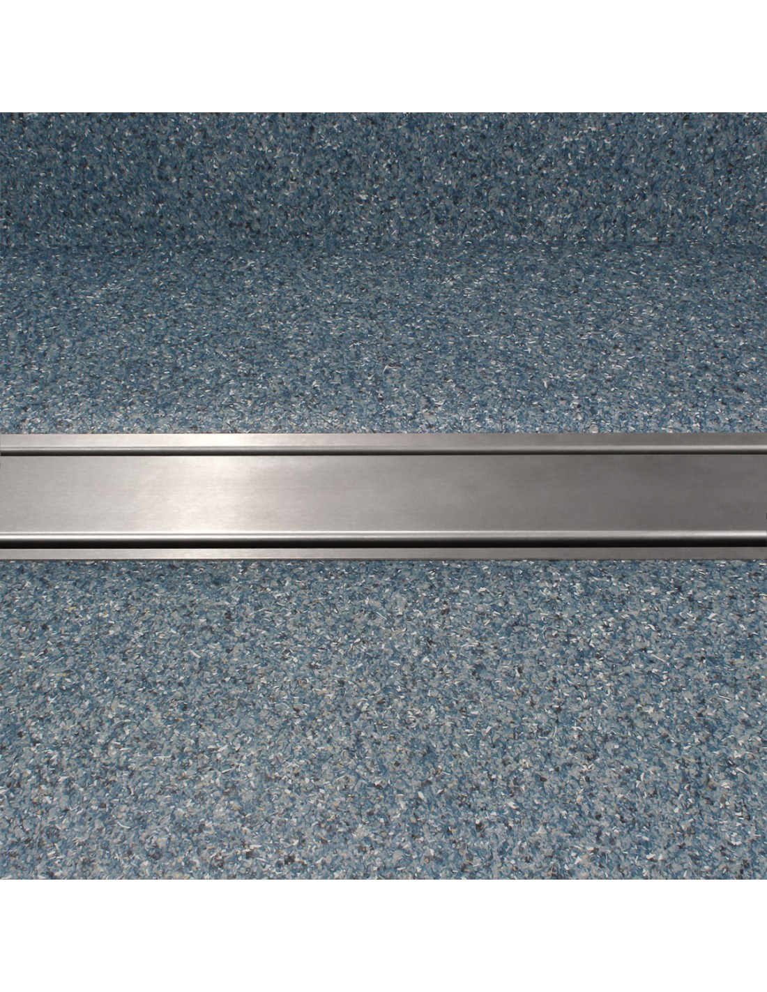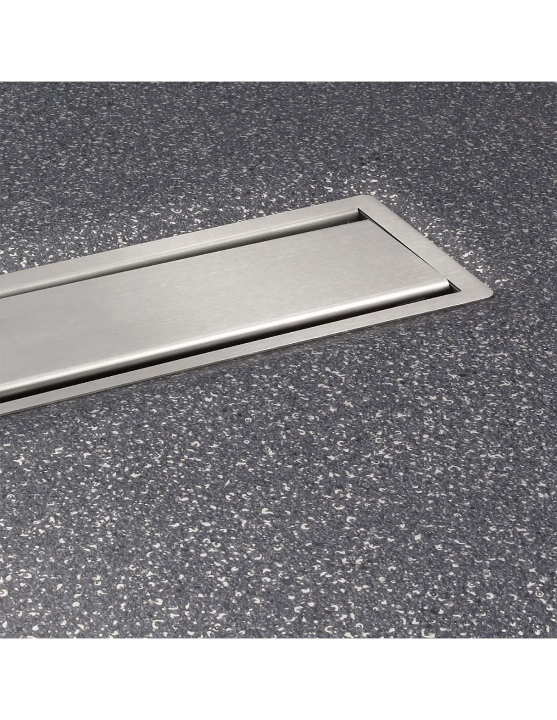 Die eingearbeitete Duschrinne inklusive Designabdeckung sind aus rostfreiem Edelstahl V2A (AISI 304), gemäß DIN EN 10088, gefertigt und können auf Wunsch auch aus V4A (AISI 316) hergestellt werden. Dieses langlebige Material ist eine essentielle Wahl für Nassräume, da es eine besonders hohe Korrosions- und Oxidationsbeständigkeit besitzt. Standardmäßig ist die Oberfläche gebürstet, kann jedoch auf Anfrage auch in polierter oder matter Ausführung geliefert werden.