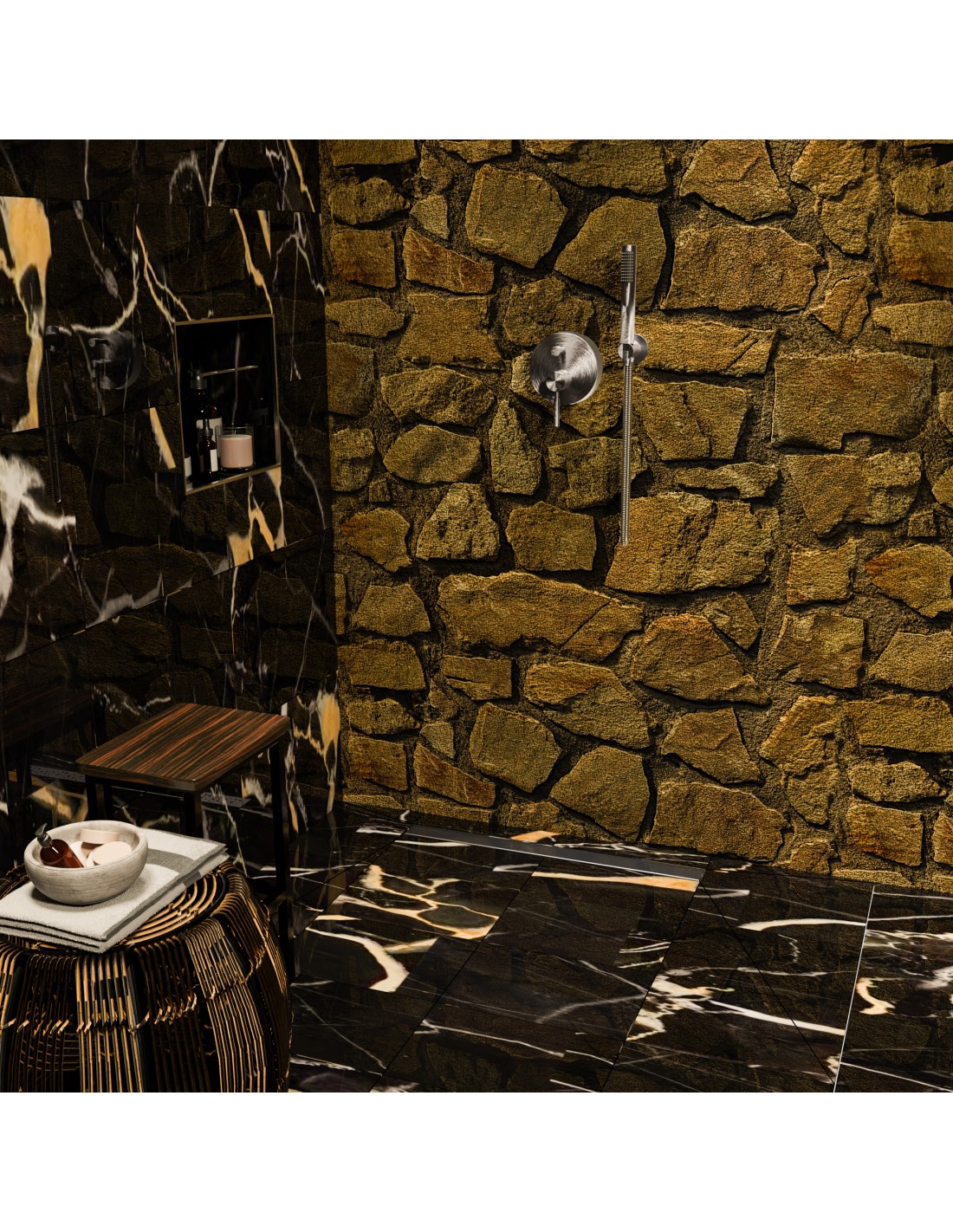 - Sobald die Flüssigfolie gemäß Herstellerinformation vollständig durchgetrocknet ist, können Sie den Duschbereich mit dem gewählten Bodenbelag verlegen (z.B. keramische Fliesen, Feinsteinzeug oder Granit). Dichten Sie zuletzt noch den Spalt zwischen Fliesen und Rinnenkörper sowie Fliesen und Wand mit einen entsprechendem Sanitärsilikon ab.