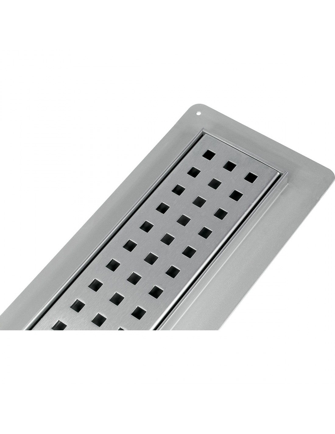 Edelstahl Duschrinne 60 cm für Fliesenboden mit Isolierflansch | Komplett-Set inkl. Designrost Sirocco (Vierecke), Dichtmanschette, höhenverstellbare Standfüße und Siphon