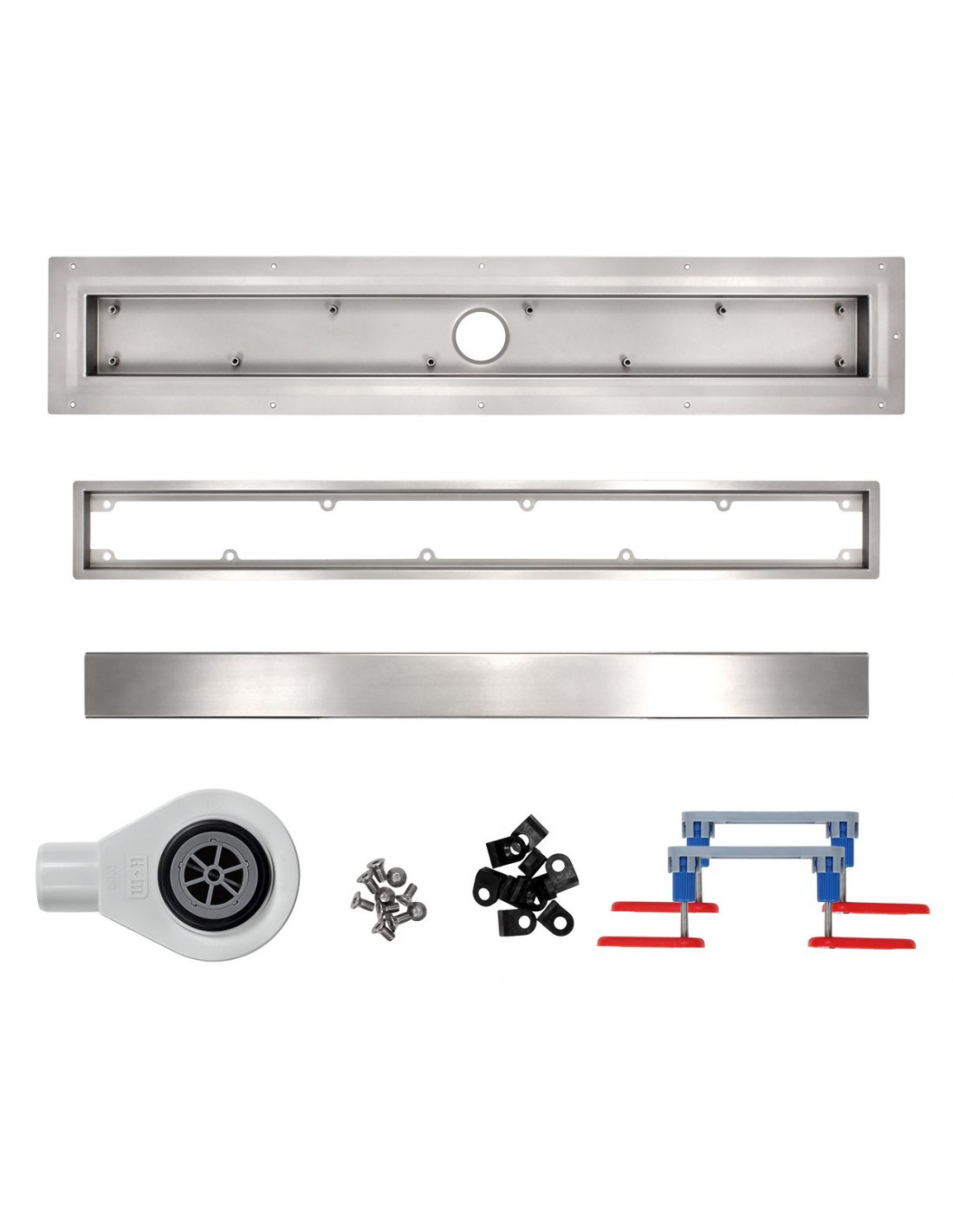 Edelstahl Duschrinne 100 cm für Vinylboden mit Klemmfunktion und Isolierflansch | Komplett-Set inkl. Designrost Ponente (geschlossen), höhenverstellbare Standfüße und Siphon