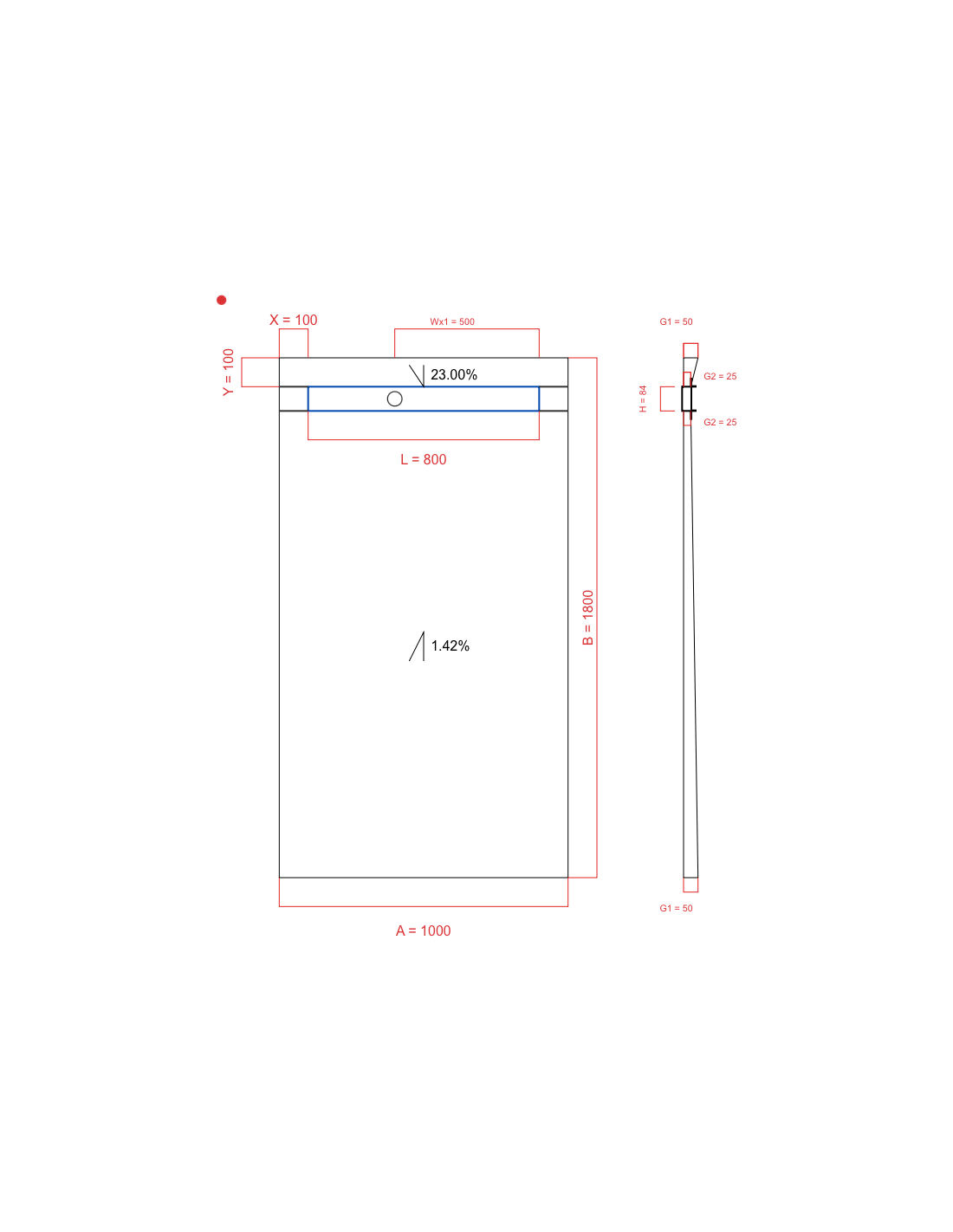 - Laybase Wiper 2 way 1000 x 1800 mm Duschrinne Premium Pure 800 mm Brushed, stärke: 50 25 mm Ablaufposition: 300 mm, Siphon: H+M Drop 50 x 1
