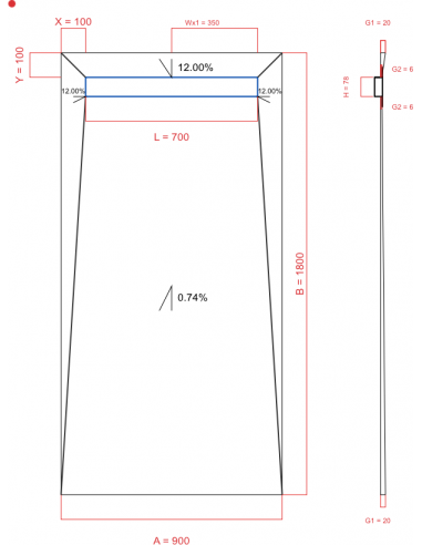 - Laybase Wiper 4 way 900 x 1800 mm Duschrinne Vf Ponente 700 mm Brushed, stärke: 20 6 mm Ablaufposition: 350 mm, Siphon: H+M Drop 35 x 1