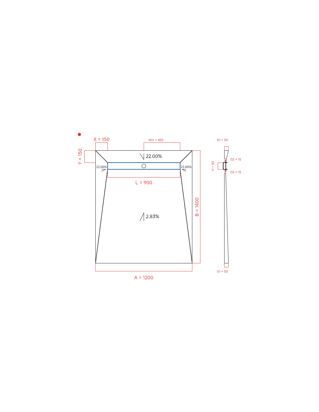 - Resinbase Wiper 4 way 1200 x 1400 mm Duschrinne Premium Pure 900 mm Brushed, stärke: 50 15 mm Ablaufposition: 450 mm, Siphon: H+M Drop 35 x 1