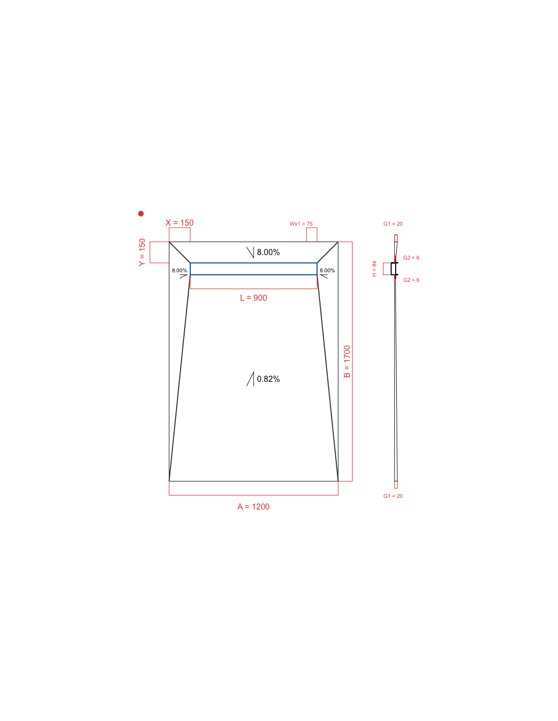 - Resinbase Wiper 4 way 1200 x 1700 mm Duschrinne Premium Pure 900 mm Brushed, stärke: 20 6 mm Ablaufposition: 825 mm, Siphon: H+M Drop 35 x 1