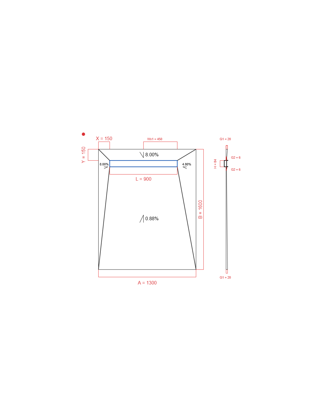 - Showerbase Wiper 4 way 1300 x 1600 mm Duschrinne Premium Pure 900 mm Brushed, stärke: 20 6 mm Ablaufposition: 450 mm, Siphon: H+M Drop 35 x 1