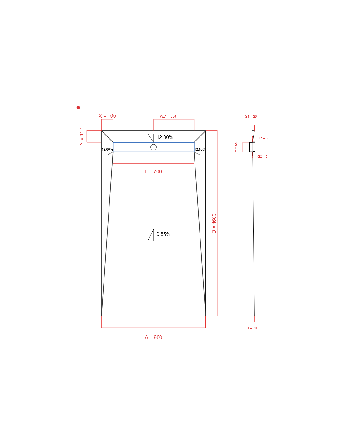 Showerbase Wiper 4 way 900 x 1600 mm Duschrinne Premium Pure 700 mm Brushed, stärke: 20 6 mm Ablaufposition: 350 mm, Siphon: McAlpine Senkrecht