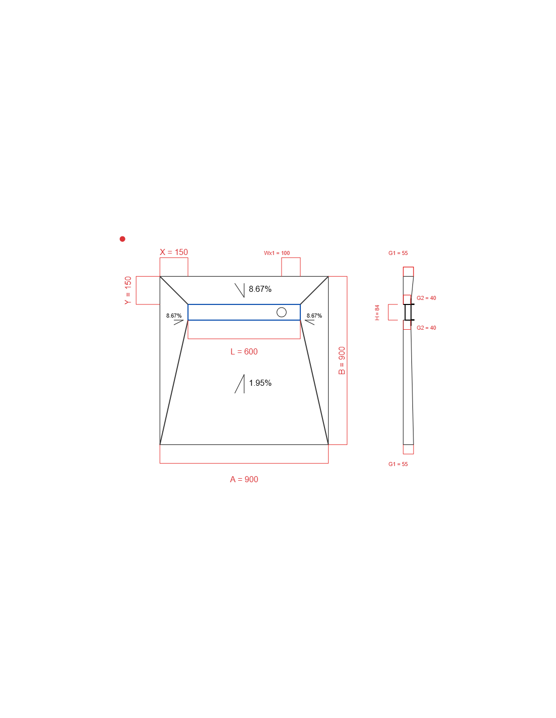 - Showerbase Wiper 4 way 900 x 900 mm Duschrinne Premium Pure 600 mm Brushed, stärke: 55 40 mm Ablaufposition: 500 mm, Siphon: McAlpine Senkrecht x 1