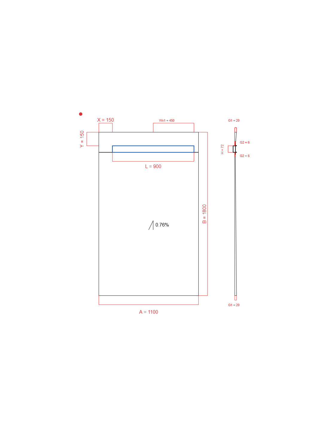 - Showerlay Wiper 1 way 1100 x 1800 mm Duschrinne Elite Pure 900 mm Brushed Silver, stärke: 20 6 mm Ablaufposition: 450 mm, Siphon: H+M Drop 35 x 1