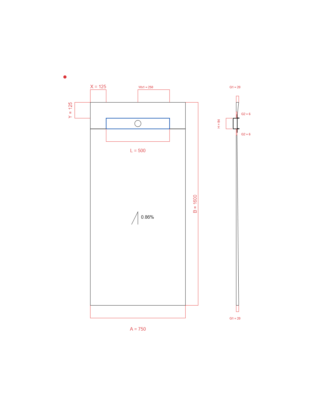 - Showerlay Wiper 1 way 750 x 1600 mm Duschrinne Premium Pure 500 mm Brushed, stärke: 20 6 mm Ablaufposition: 250 mm, Siphon: H+M Drop 35 x 1