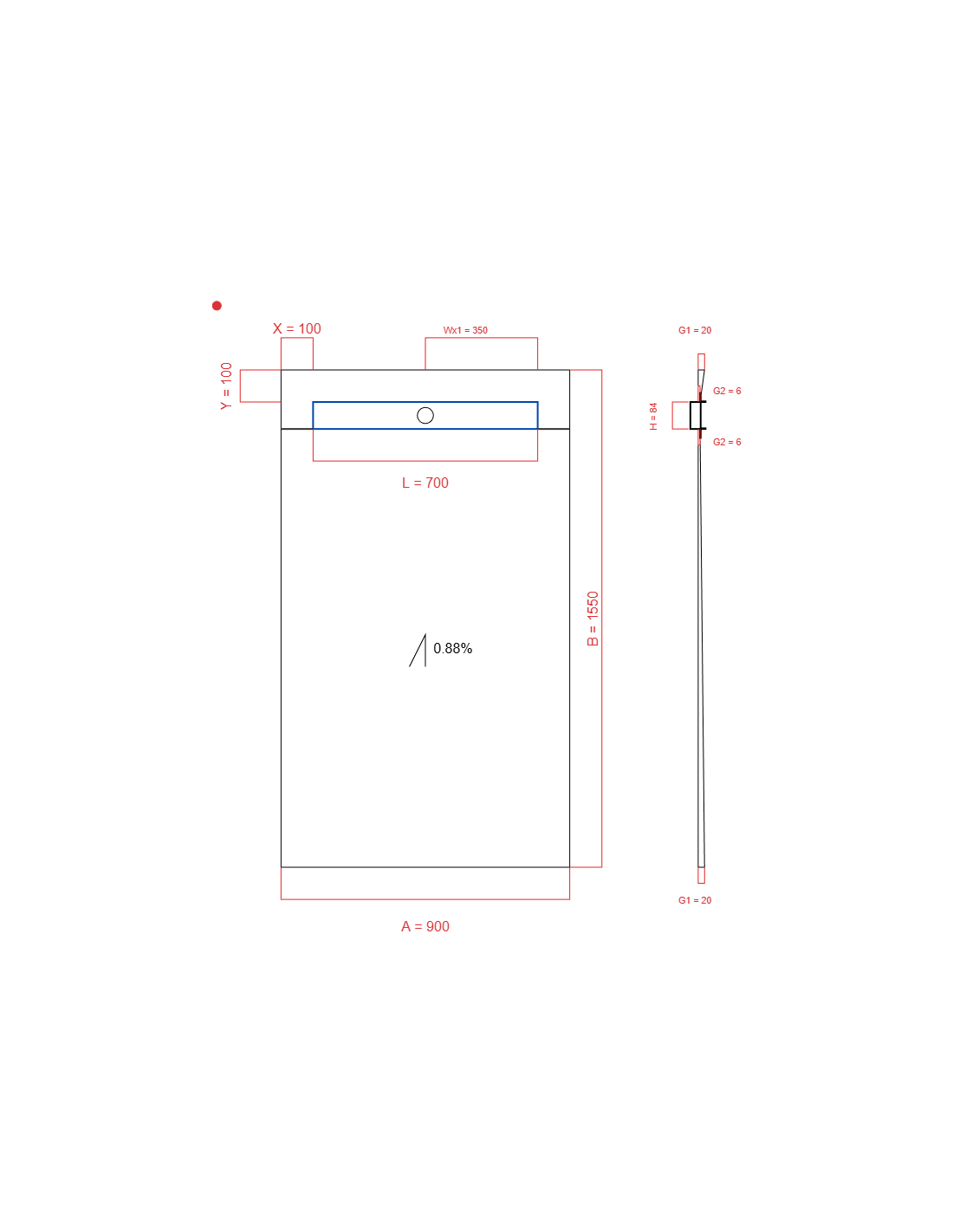 - Showerlay Wiper 1 way 900 x 1550 mm Duschrinne Premium Pure 700 mm Brushed, stärke: 20 6 mm Ablaufposition: 350 mm, Siphon: H+M Drop 35 x 1