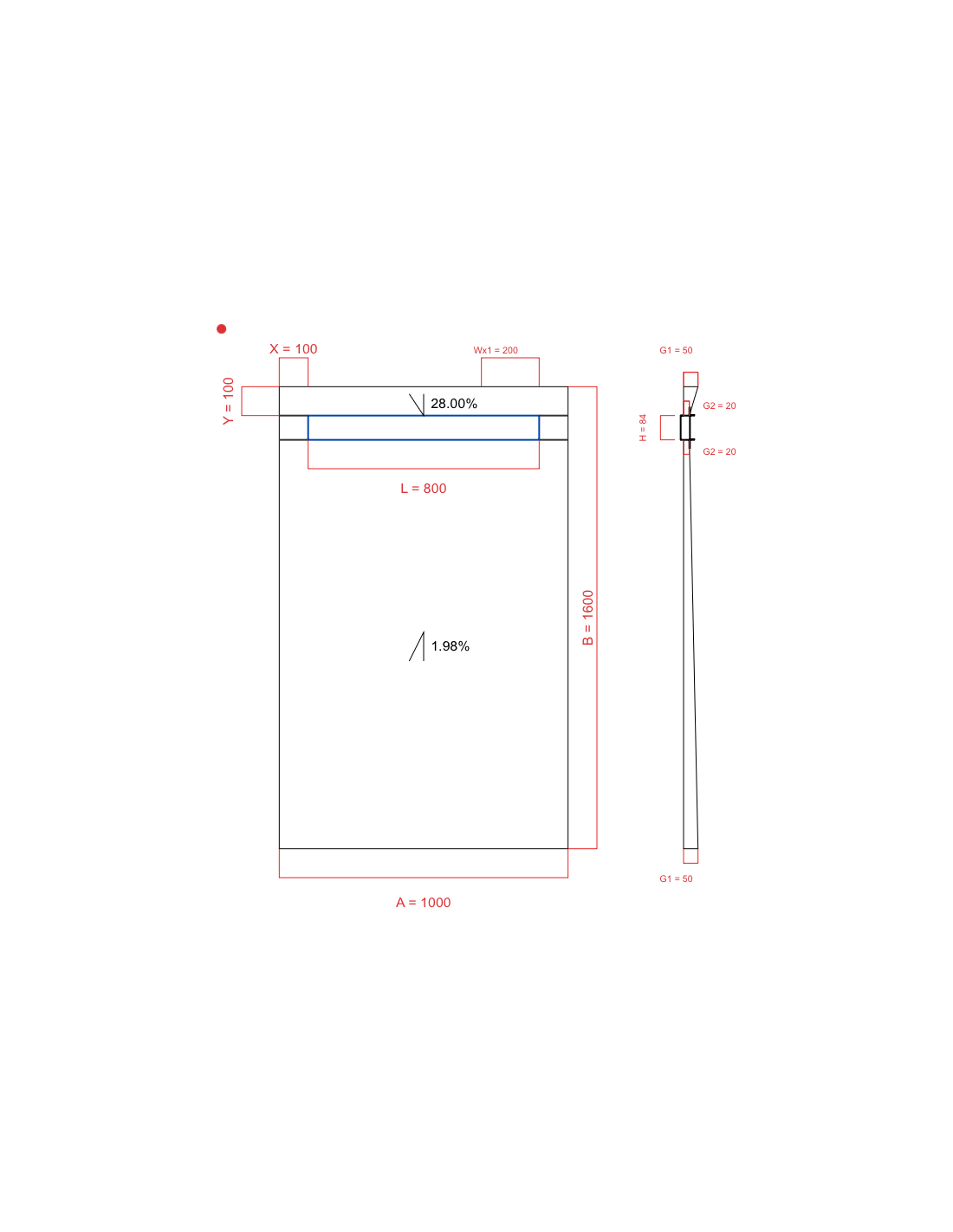 - Showerlay Wiper 2 way 1000 x 1600 mm Duschrinne Premium Ponente 800 mm Brushed, stärke: 50 20 mm Ablaufposition: 600 mm, Siphon: H+M Drop 35 x 1