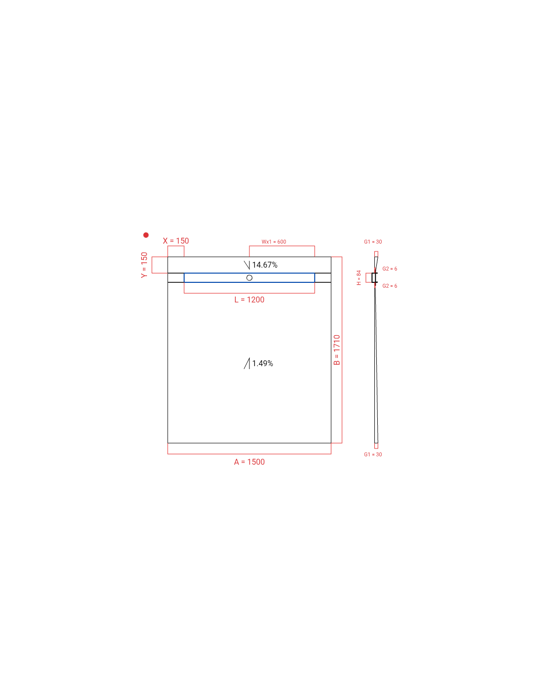 Showerlay Wiper 2 way 1500 x 1710 mm Duschrinne Premium Pure 1200 mm Brushed, stärke: 30 6 mm Ablaufposition: 600 mm, Siphon: H+M Drop 35