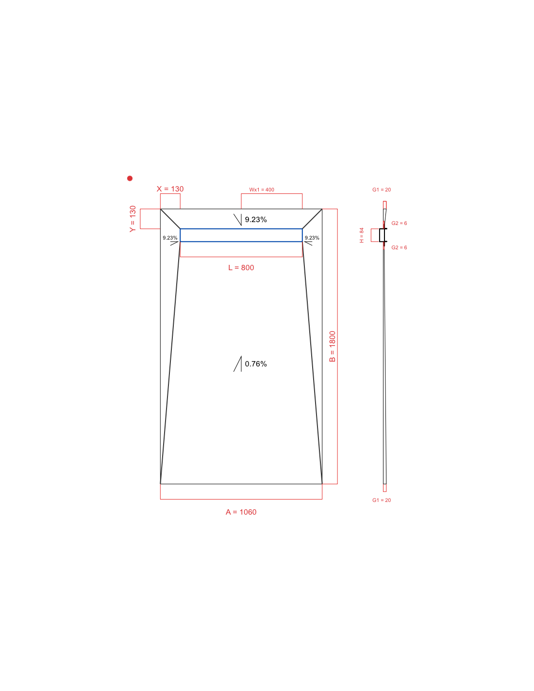 - Showerlay Wiper 4 way 1060 x 1800 mm Duschrinne Premium Pure 800 mm Brushed, stärke: 20 6 mm Ablaufposition: 400 mm, Siphon: H+M Drop 35 x 1