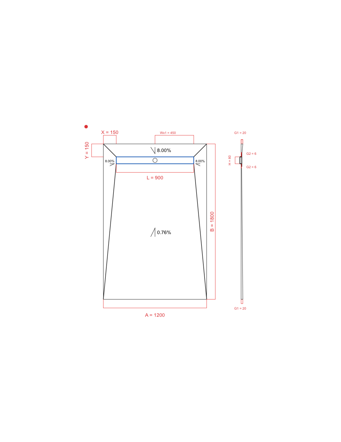 - Showerlay Wiper 4 way 1200 x 1800 mm Duschrinne Invisible Invisible 900 mm Brushed, stärke: 20 6 mm Ablaufposition: 450 mm, Siphon: H+M Drop 35 x 1