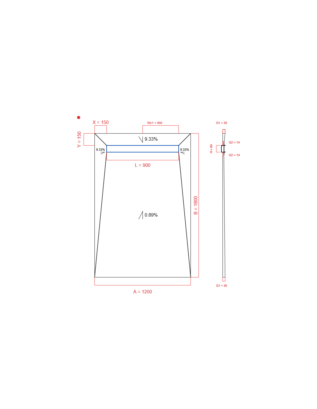 - Showerlay Wiper 4 way 1200 x 1800 mm Duschrinne Premium Pure 900 mm Brushed, stärke: 30 14 mm Ablaufposition: 450 mm, Siphon: H+M Drop 35 x 1