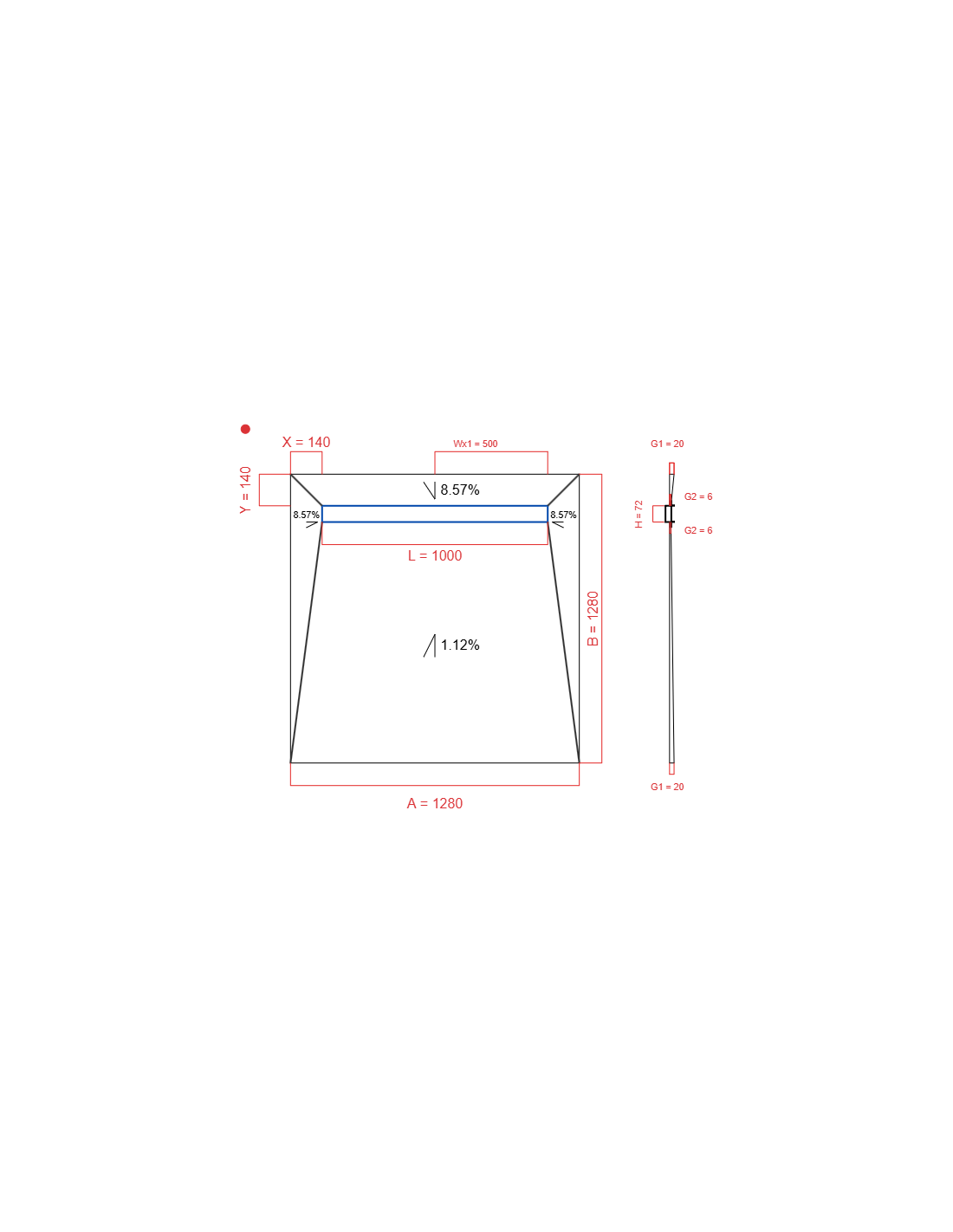 | Stärke am Ablauf (G2) | 6 mm |