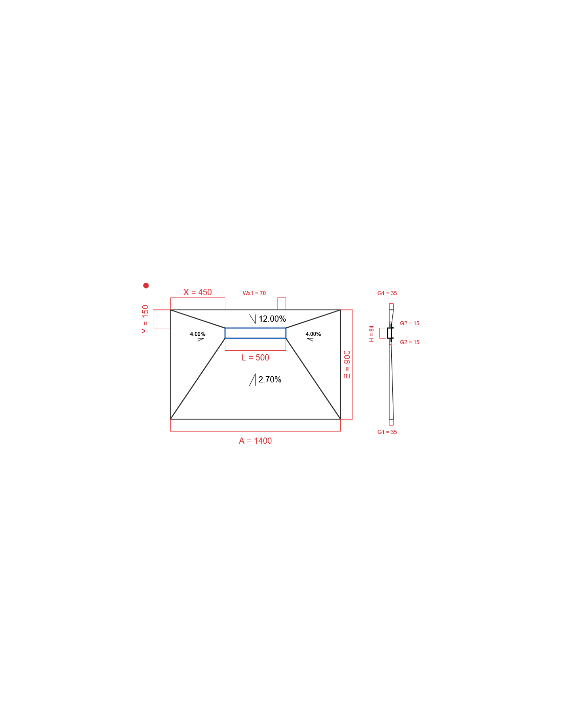 - Showerlay Wiper 4 way 1400 x 900 mm Duschrinne Premium Pure 500 mm Brushed, stärke: 35 15 mm Ablaufposition: 430 mm, Siphon: H+M Drop 35 x 1