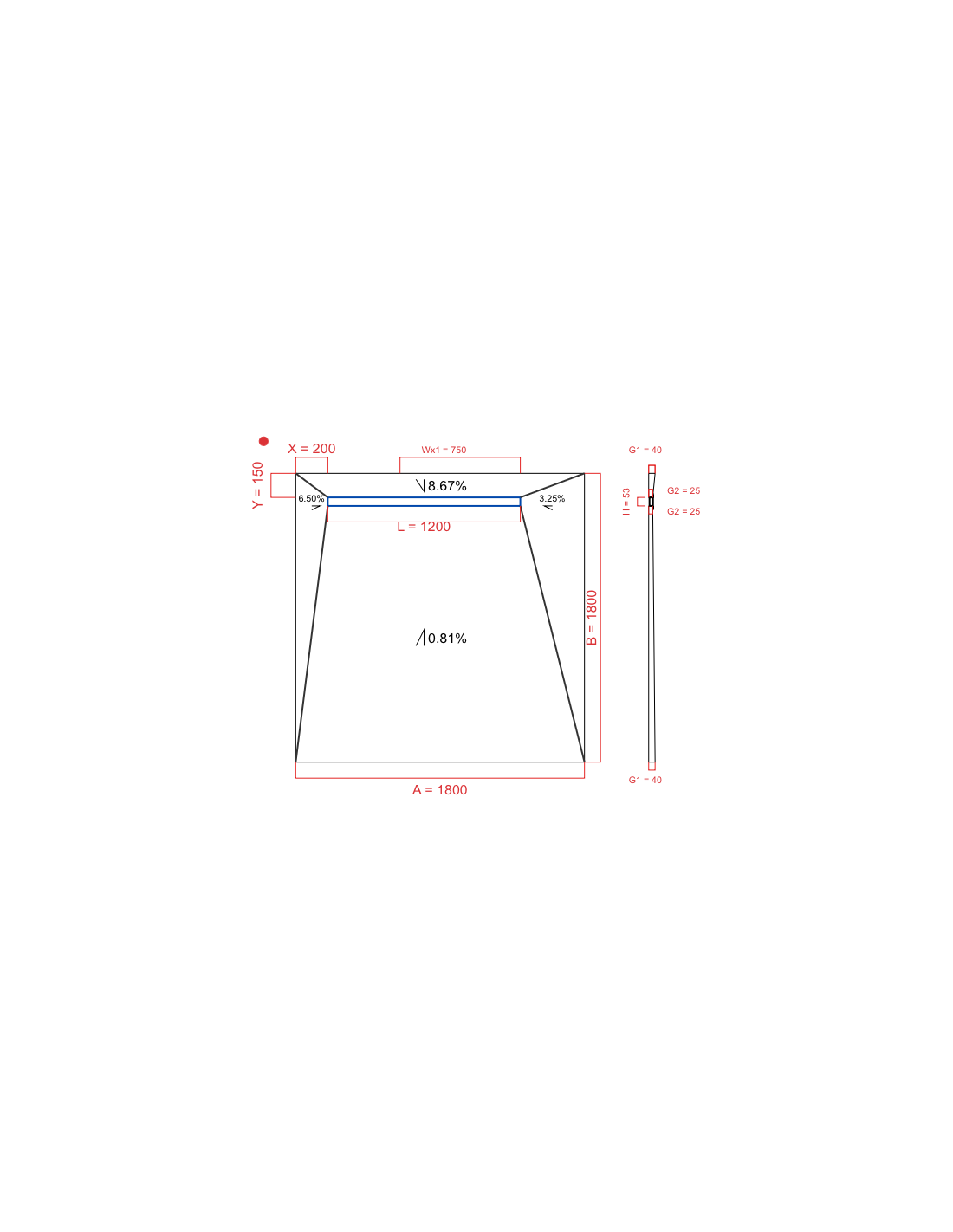 - Showerlay Wiper 4 way 1800 x 1800 mm Duschrinne Invisible slim Invisible slim 1200 mm Brushed, stärke: 40 25 mm Ablaufposition: 450 mm, Siphon: Sperrwasserhöhe: 25 mm x 1