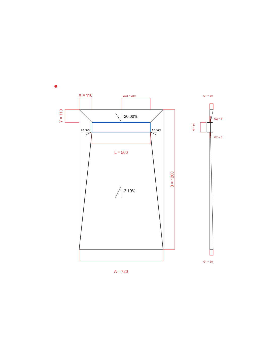 - Showerlay Wiper 4 way 720 x 1200 mm Duschrinne Premium Pure 500 mm Brushed, stärke: 30 6 mm Ablaufposition: 250 mm, Siphon: H+M Drop 35 x 1