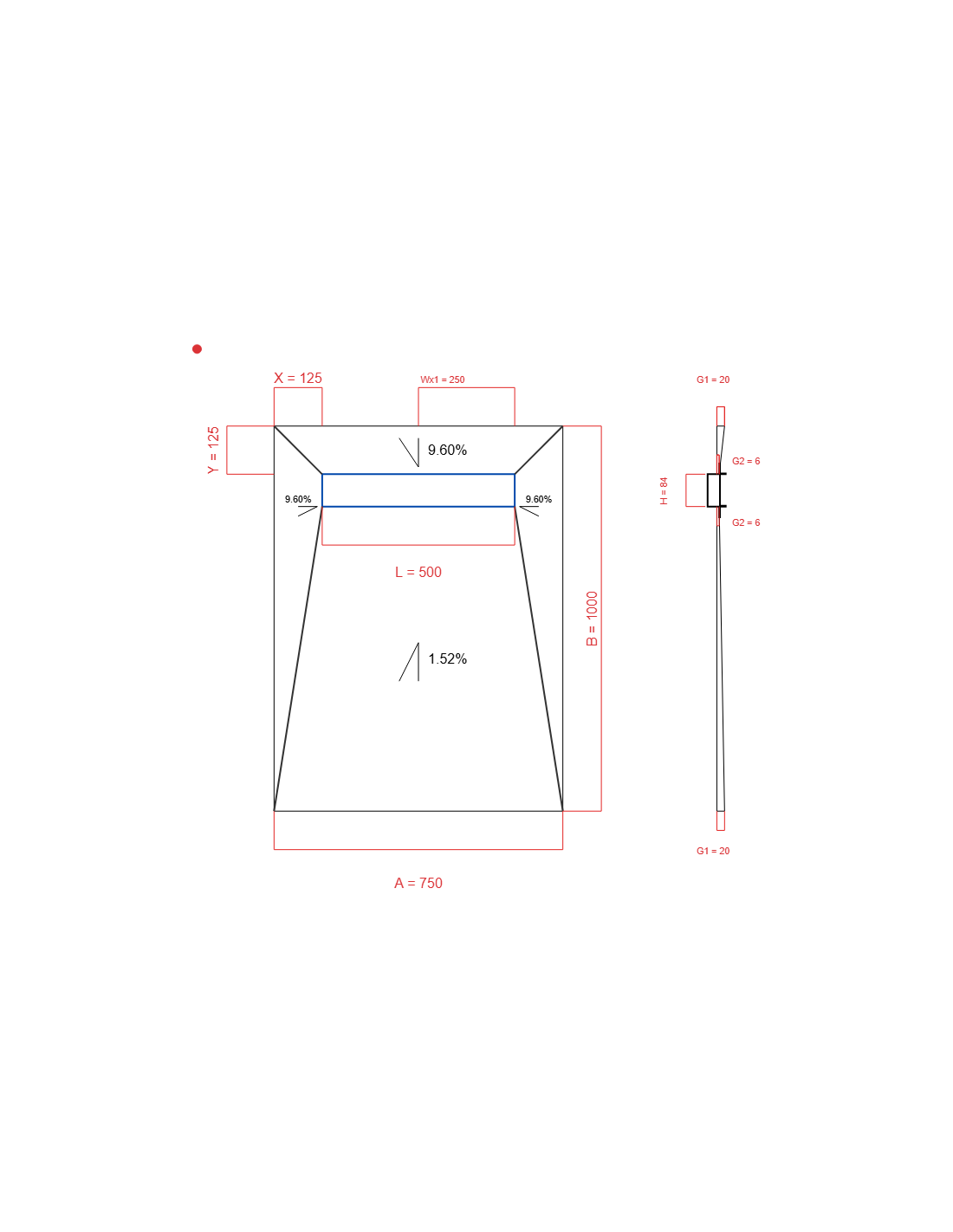 Showerlay Wiper 4 way 750 x 1000 mm Duschrinne Premium Pure 500 mm Brushed, stärke: 20 6 mm Ablaufposition: 250 mm, Siphon: H+M Drop 35