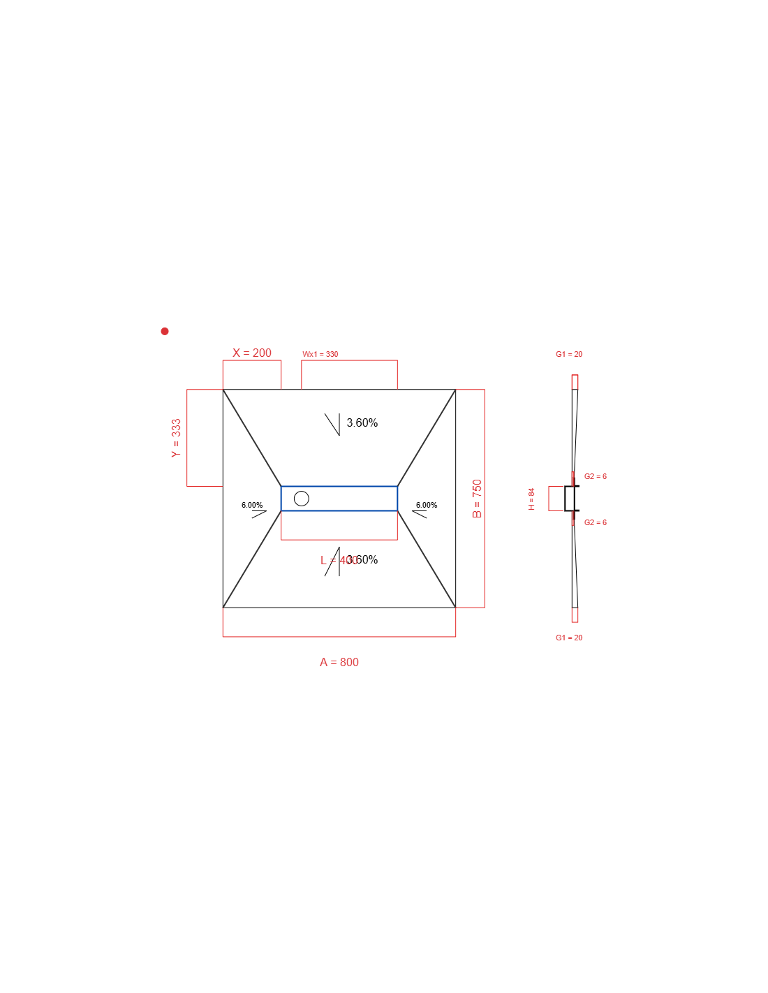 Showerlay Wiper 4 way 800 x 750 mm Duschrinne Premium Pure 400 mm Brushed, stärke: 20 6 mm Ablaufposition: 70 mm, Siphon: McAlpine Senkrecht