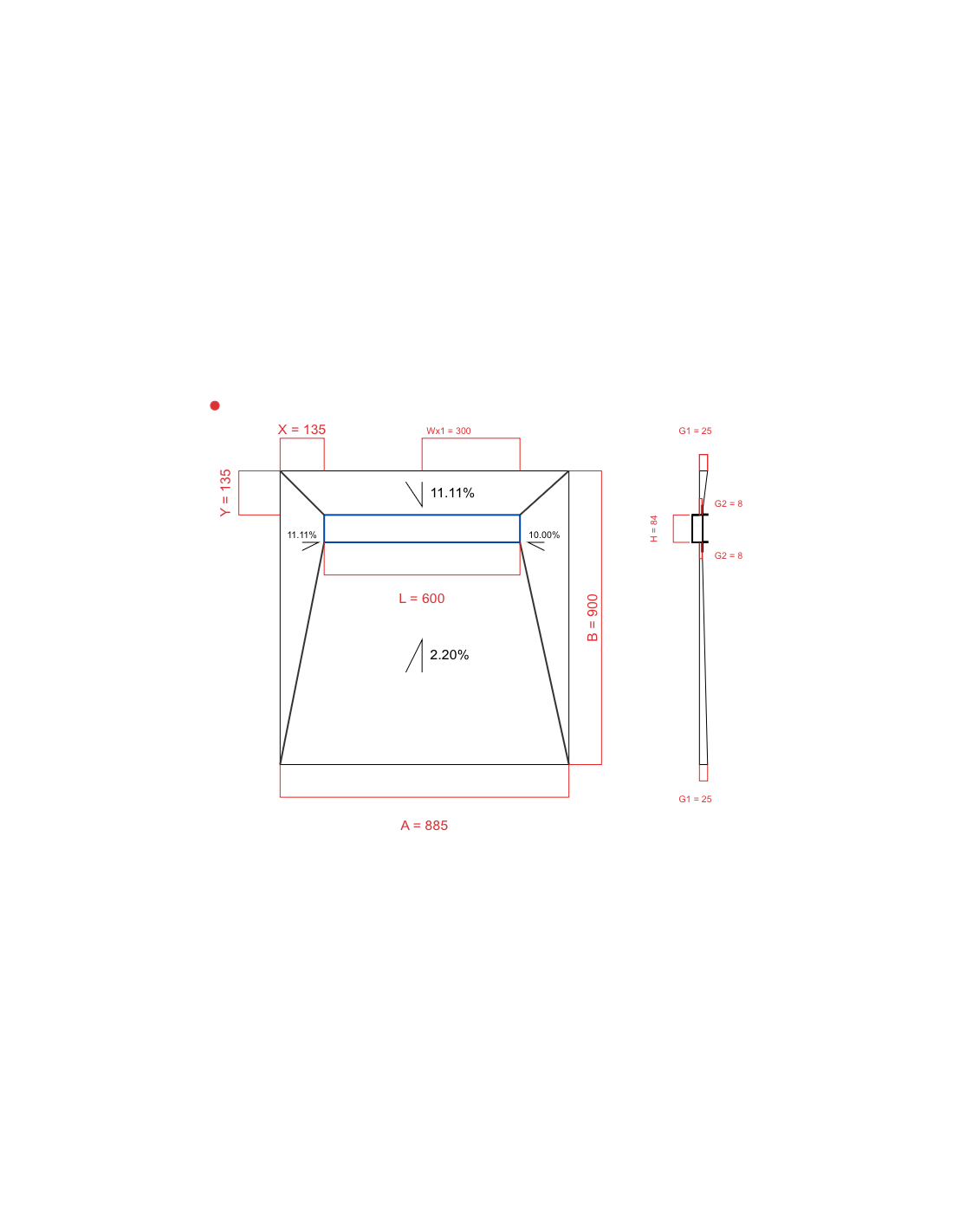 - Showerlay Wiper 4 way 885 x 900 mm Duschrinne Premium Pure 600 mm Brushed, stärke: 25 8 mm Ablaufposition: 300 mm, Siphon: H+M Drop 35 x 1