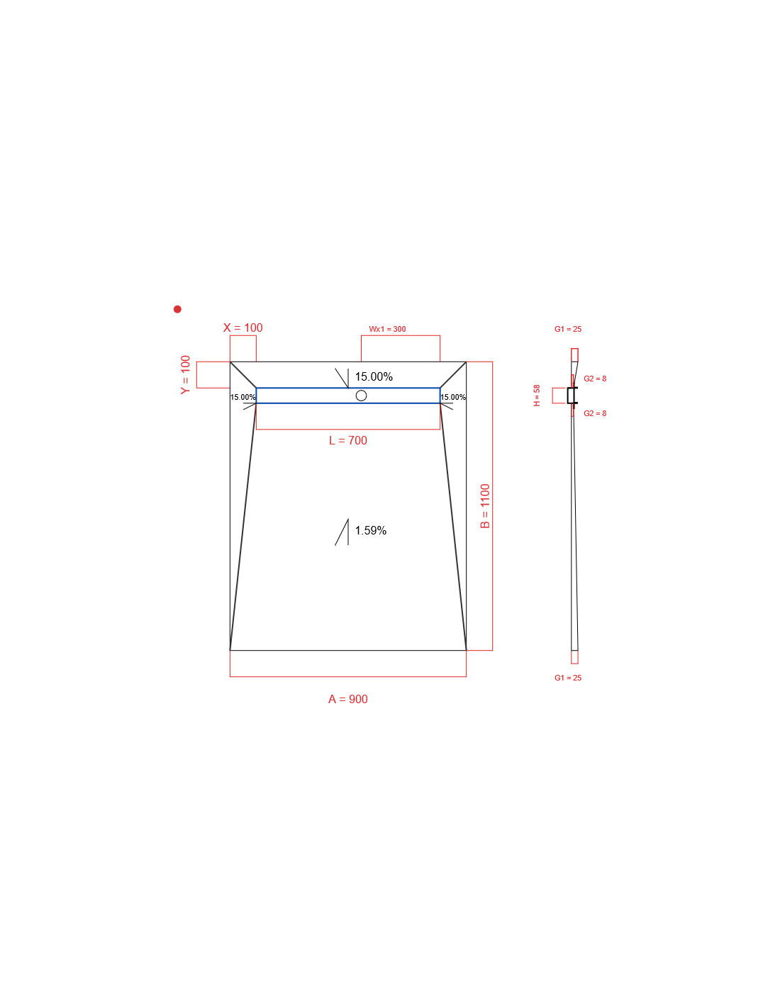 - Showerlay Wiper 4 way 900 x 1100 mm Duschrinne Premium slim Pure 700 mm Brushed, stärke: 25 8 mm Ablaufposition: 400 mm, Siphon: Sperrwasserhöhe: 25 mm x 1