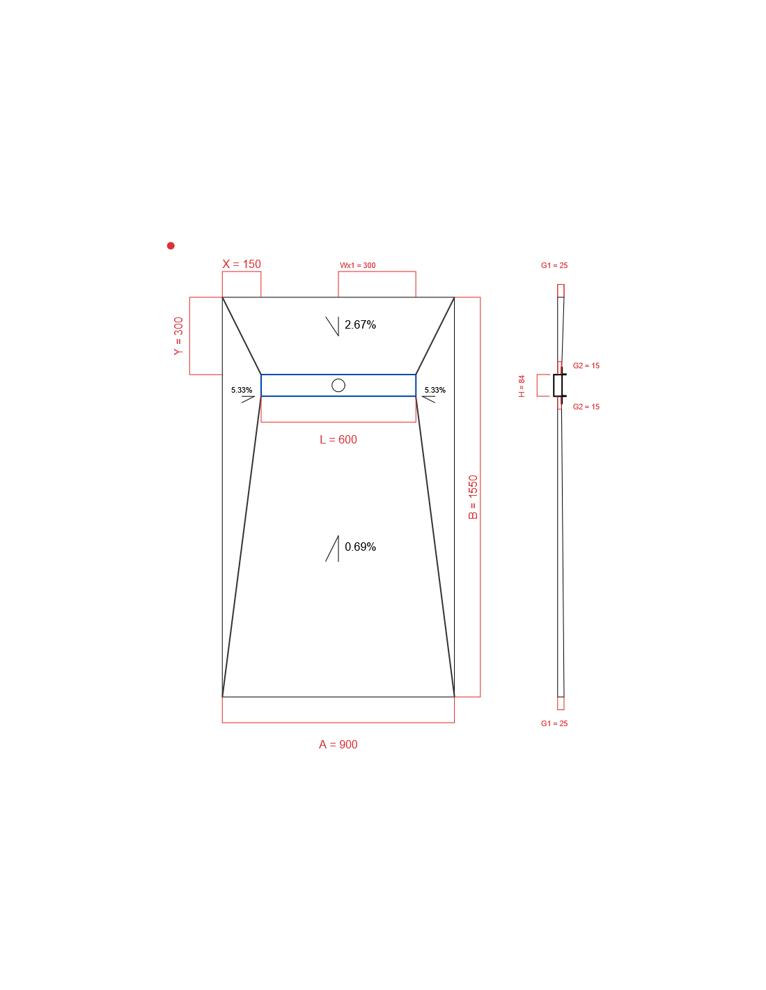 Showerlay Wiper 4 way 900 x 1550 mm Duschrinne Premium Sirocco 600 mm Brushed, stärke: 25 15 mm Ablaufposition: 300 mm, Siphon: H+M Drop 35