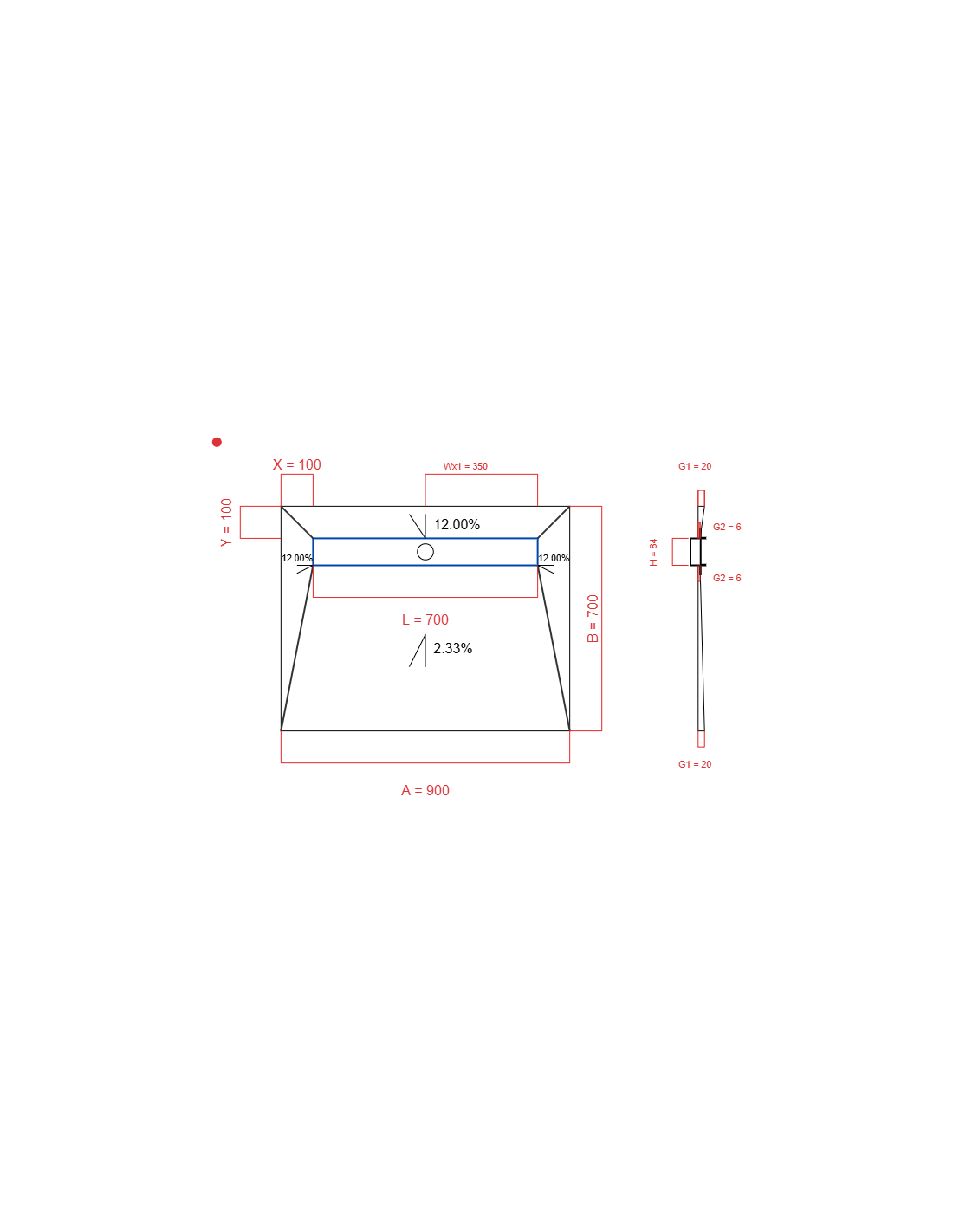Showerlay Wiper 4 way 900 x 700 mm Duschrinne Premium Pure 700 mm Brushed, stärke: 20 6 mm Ablaufposition: 350 mm, Siphon: H+M Drop 35 FP