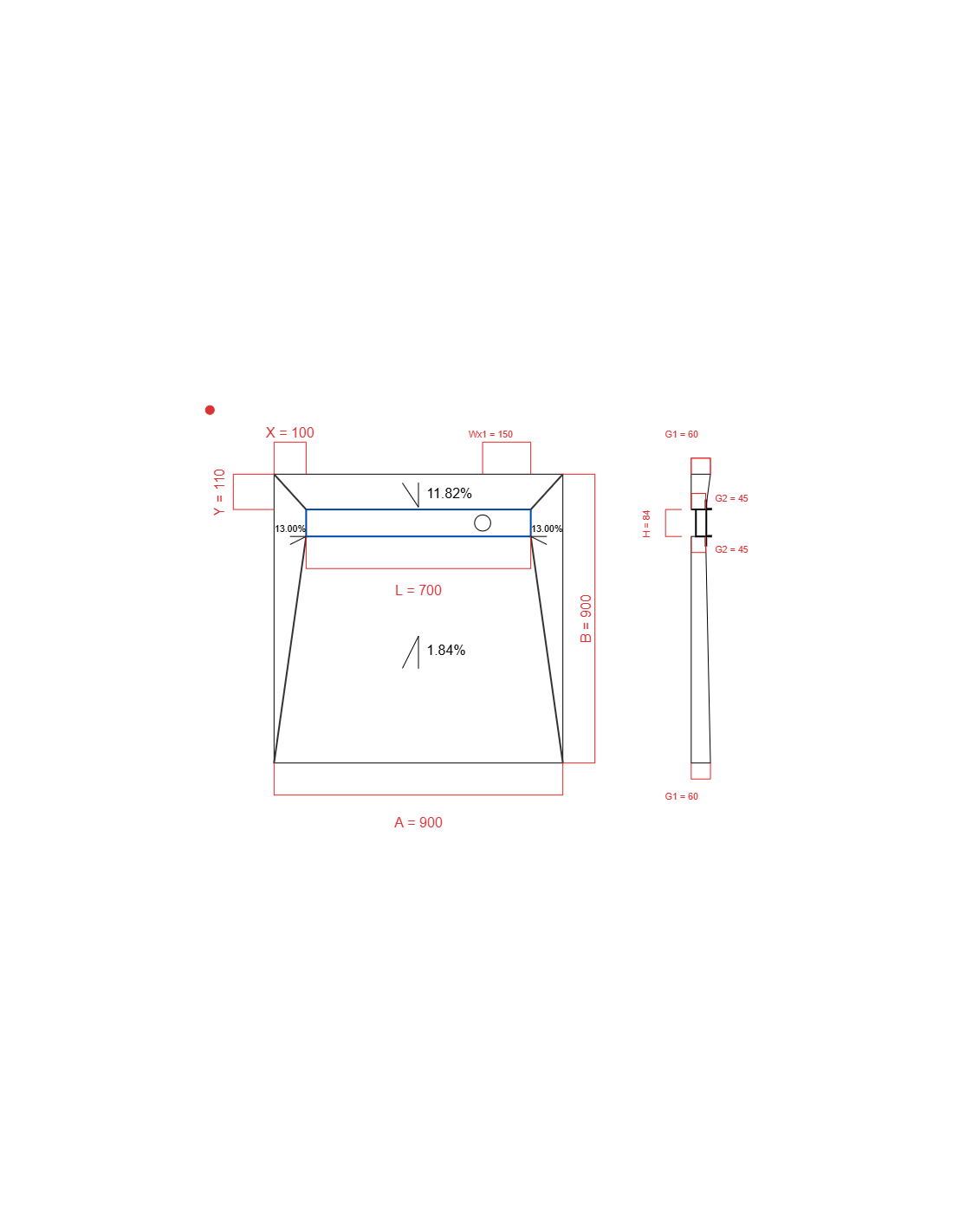 Showerlay Wiper 4 way 900 x 900 mm Duschrinne Premium Pure 700 mm Brushed, stärke: 60 45 mm Ablaufposition: 550 mm, Siphon: H+M Drop 50