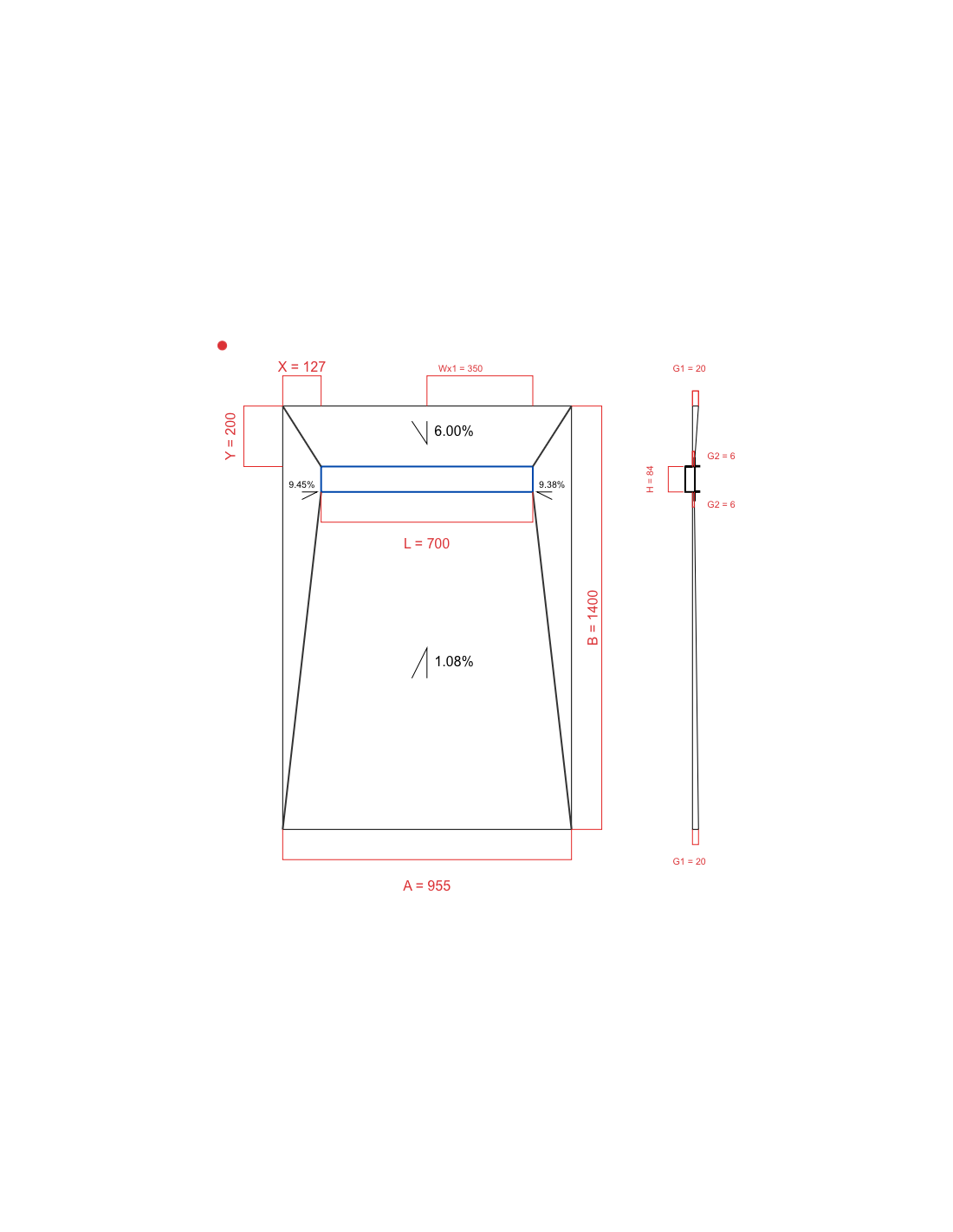 - Showerlay Wiper 4 way 955 x 1400 mm Duschrinne Premium Pure 700 mm Brushed, stärke: 20 6 mm Ablaufposition: 350 mm, Siphon: McAlpine Senkrecht x 1