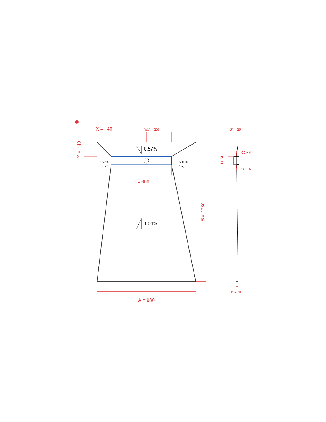 - Showerlay Wiper 4 way 980 x 1380 mm Duschrinne Premium Pure 600 mm Brushed, stärke: 20 6 mm Ablaufposition: 350 mm, Siphon: H+M Drop 35 x 1